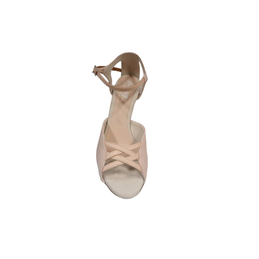 Scarpa donna aperta golden platinum , T-bar in raso lamé.